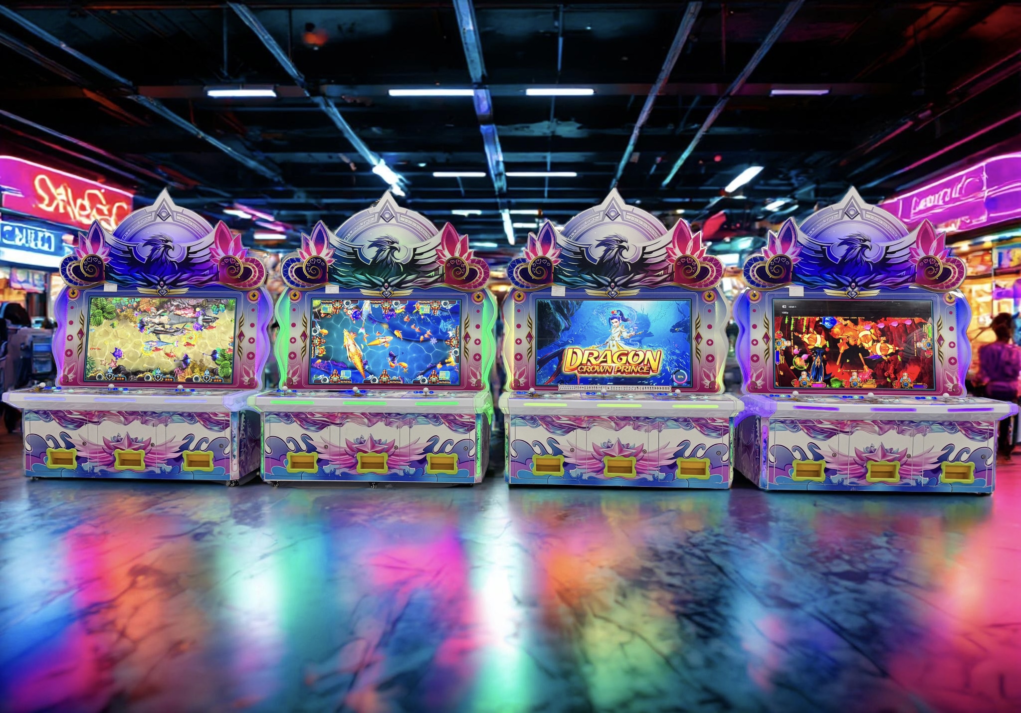 Máy bắn cá 3 người chơi được thiết kế theo phong cách fantasy – ánh sáng LED đa sắc, sử dụng màn hình lớn sắc nét, hình ảnh sinh động và âm thanh sống động.