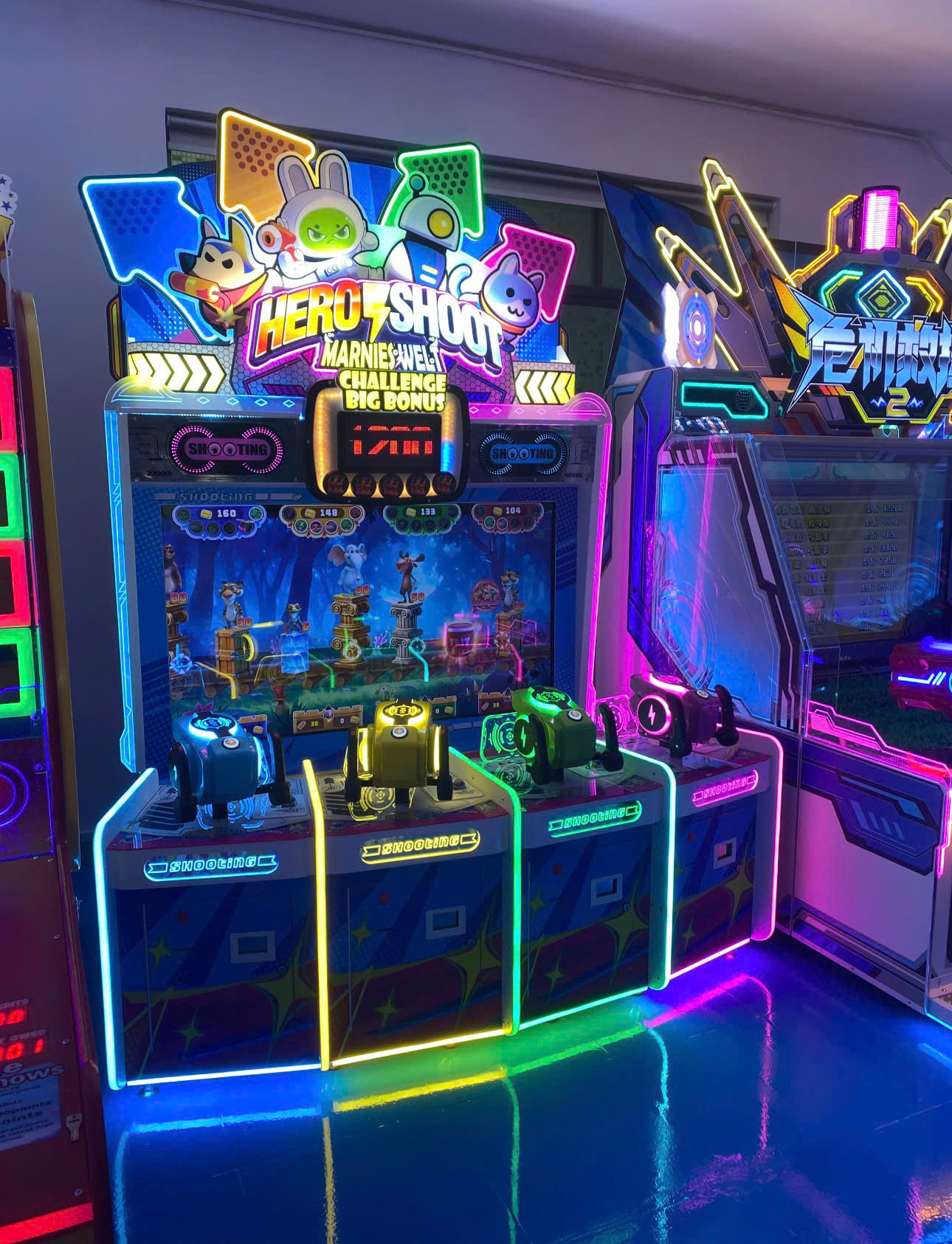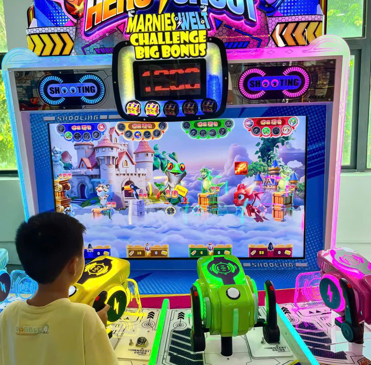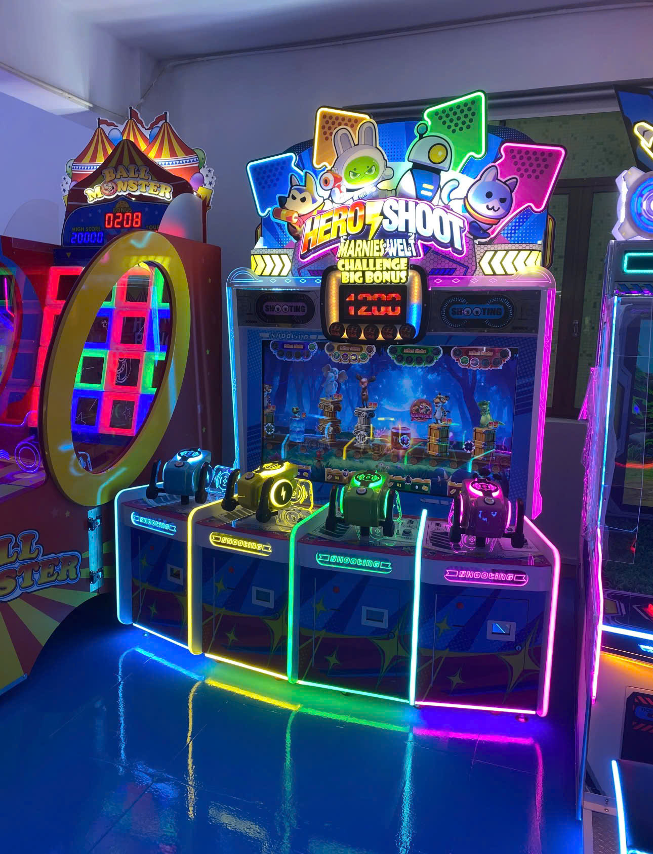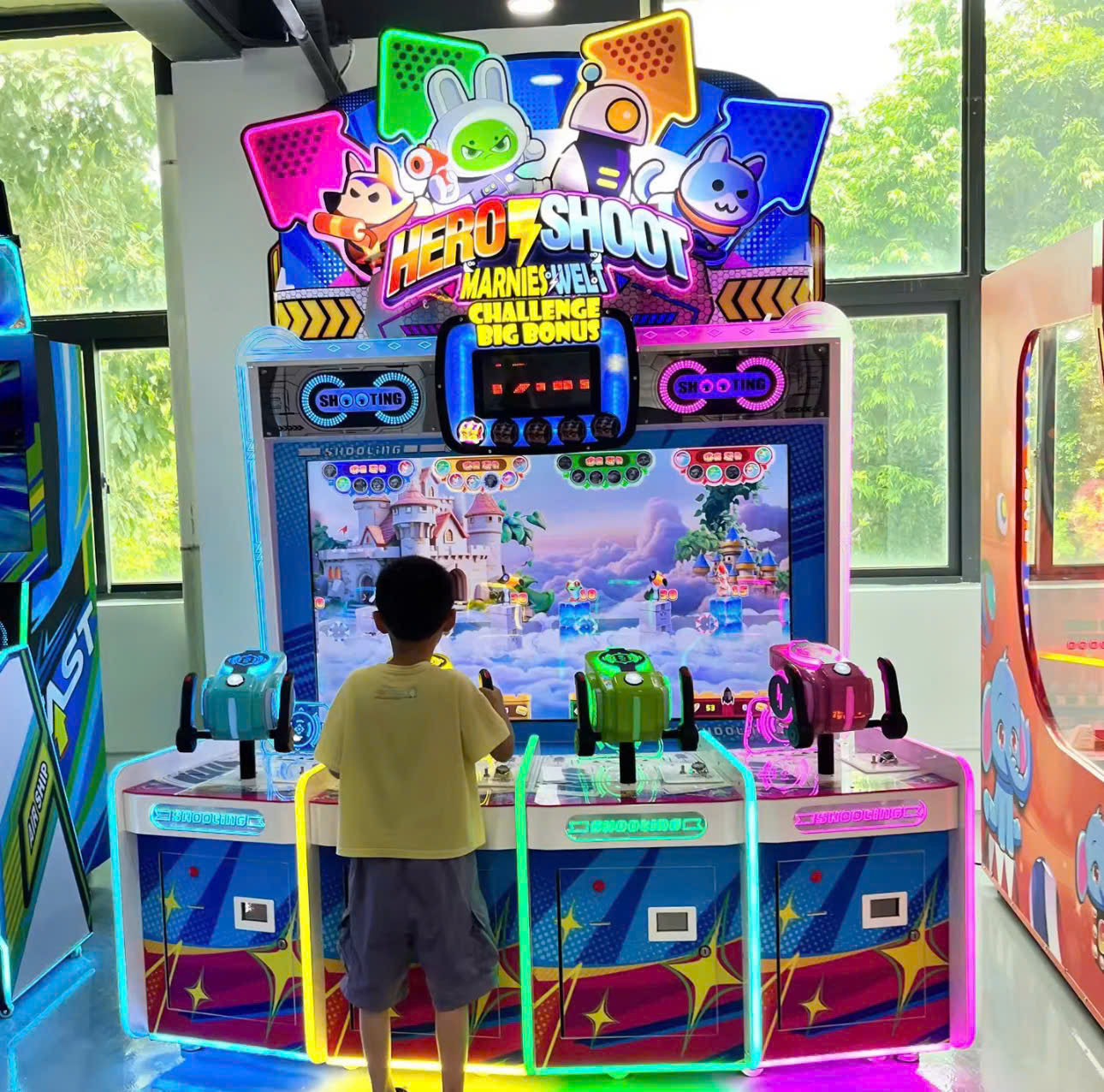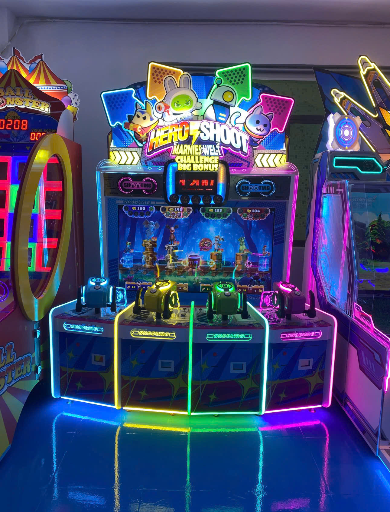 Hệ thống 4 súng bắn laser nhiều màu sắc của máy Hero Shoot.