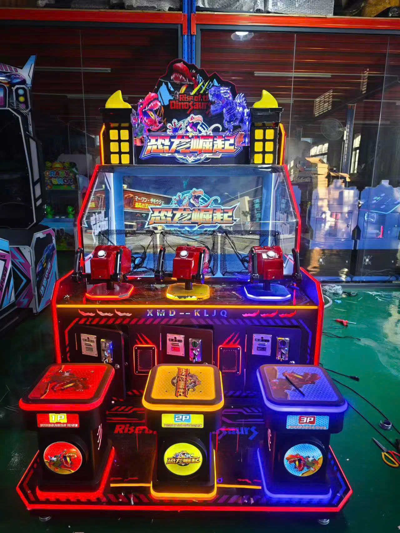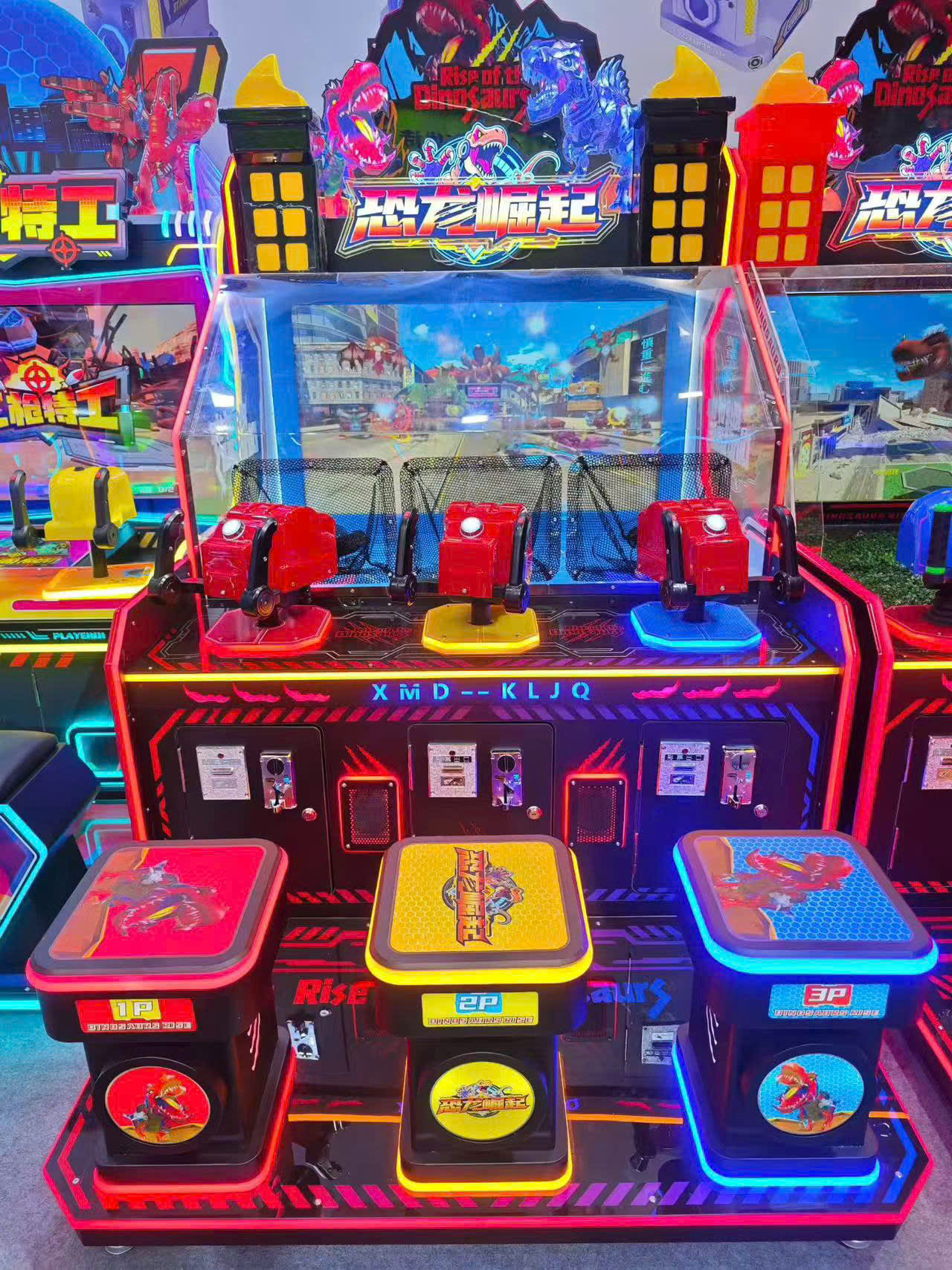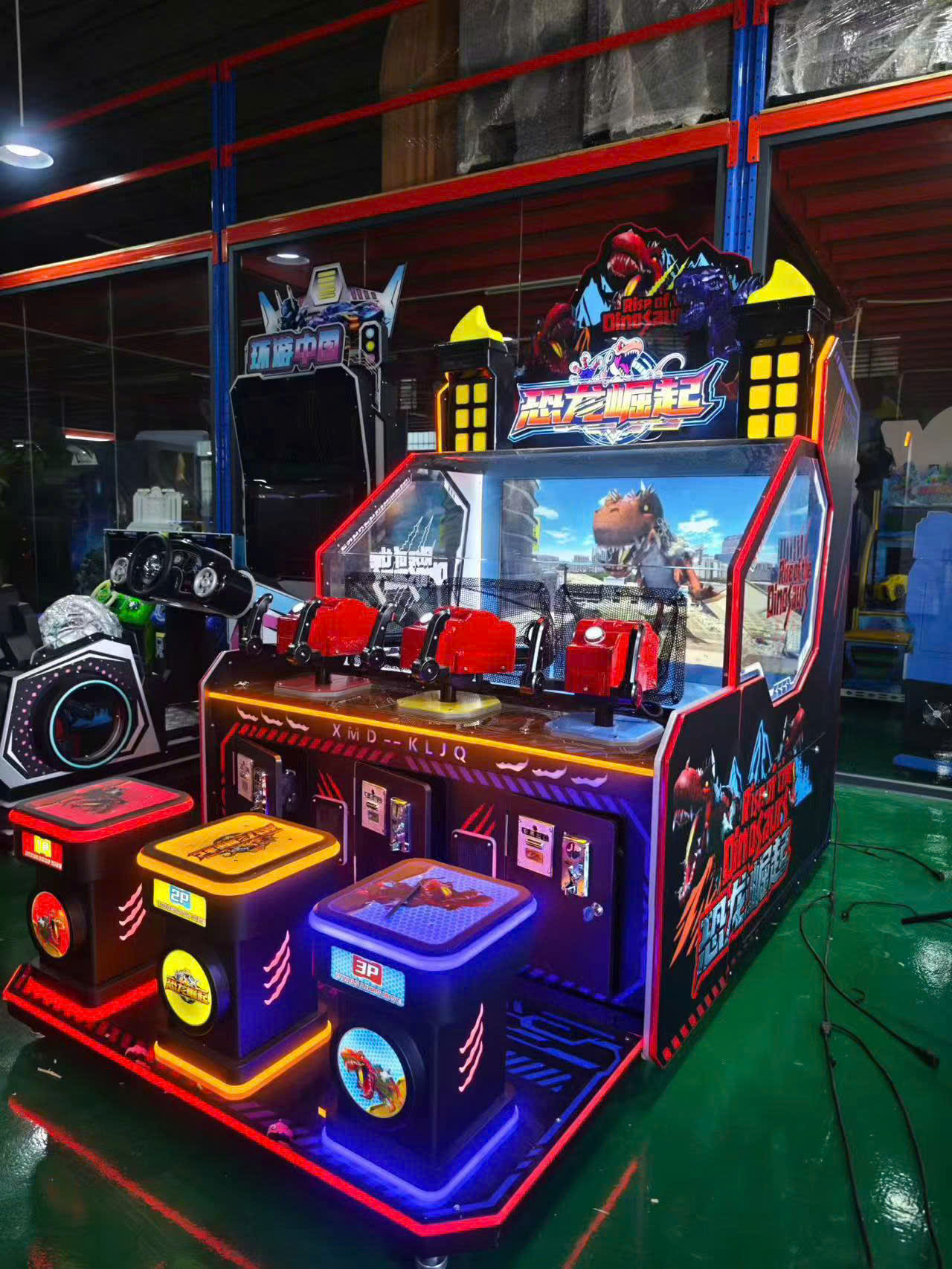 Chủ đề Rise Of The Dinosaur với màu sắc nổi bật, đèn LED rực rỡ giúp máy luôn là tâm điểm trong khu vui chơi.