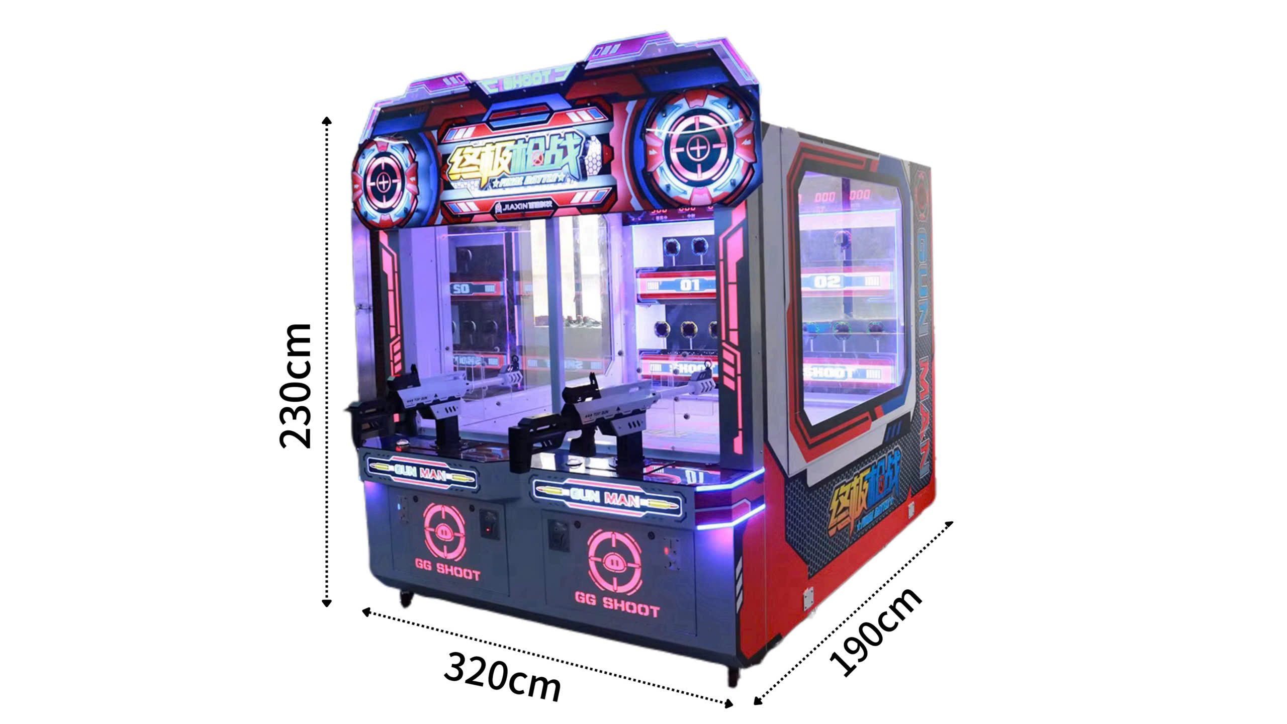 Với chiều ngang lên tới 320cm và logo GG SHOOT nổi bật, máy trở thành tâm điểm của mọi không gian giải trí. Khách hàng từ xa đã bị thu hút bởi vẻ ngoài ấn tượng.