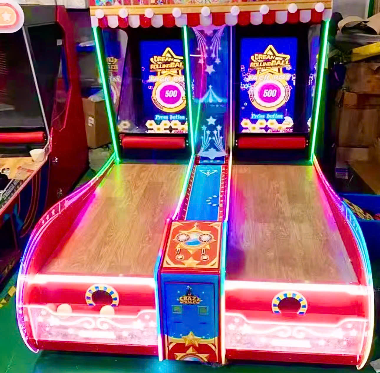 Máy game lăn bóng là dòng máy giải trí mô phỏng trò chơi bowling, nơi người chơi lăn bóng để ghi điểm vào các mục tiêu phía trước.