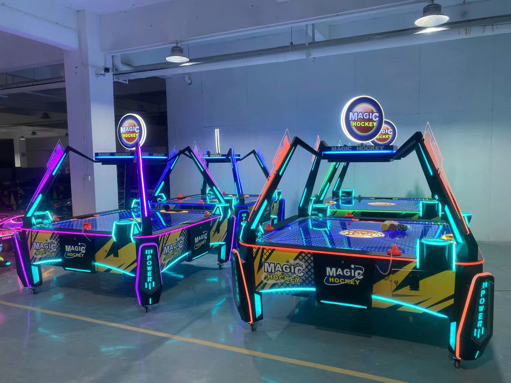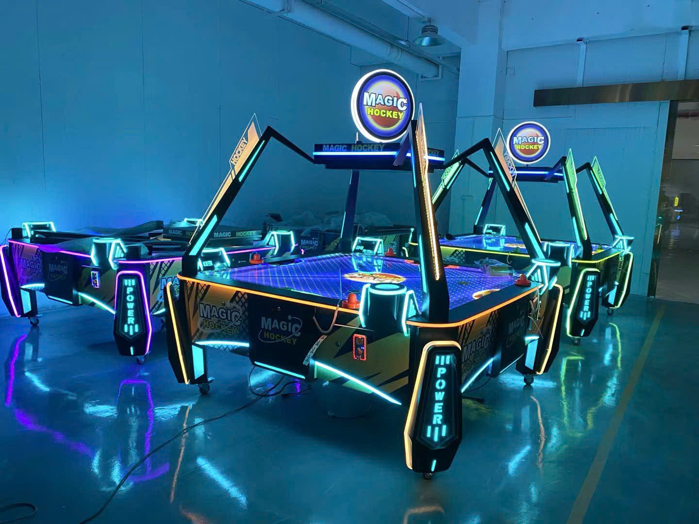 Hình ảnh thực tế MAGIC HOCKEY nổi bật với đèn LED hứa hẹn thu hút mạnh mắt nhìn tại các trung tâm giải trí.