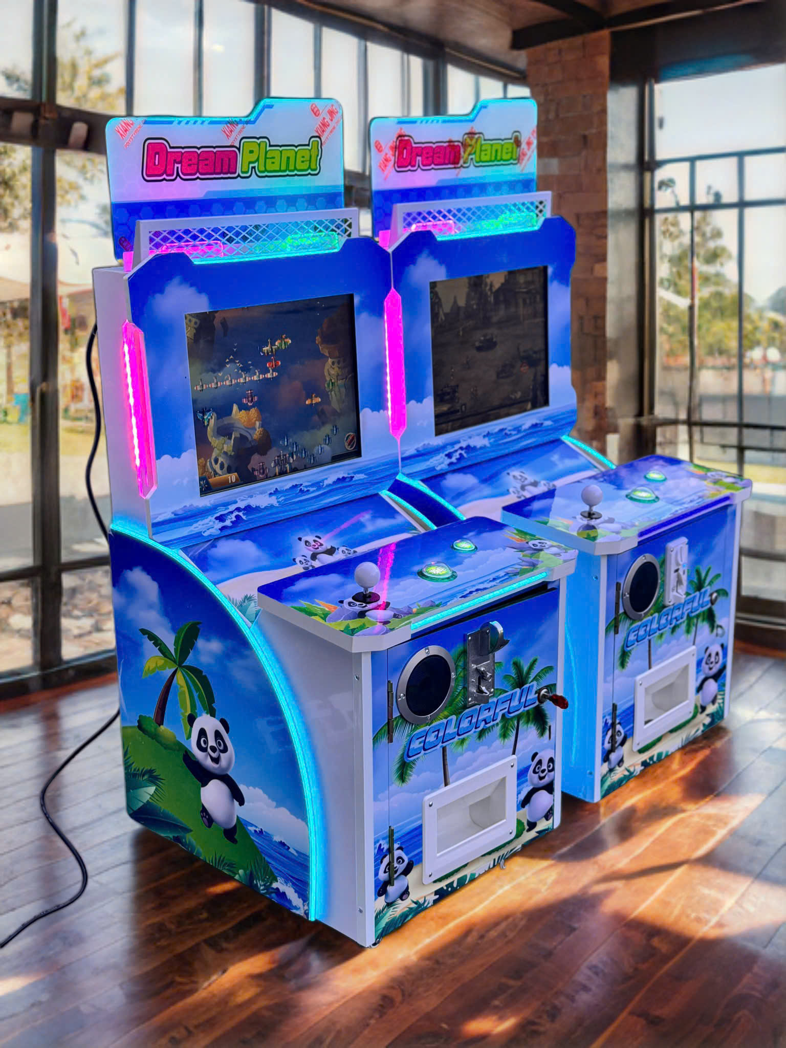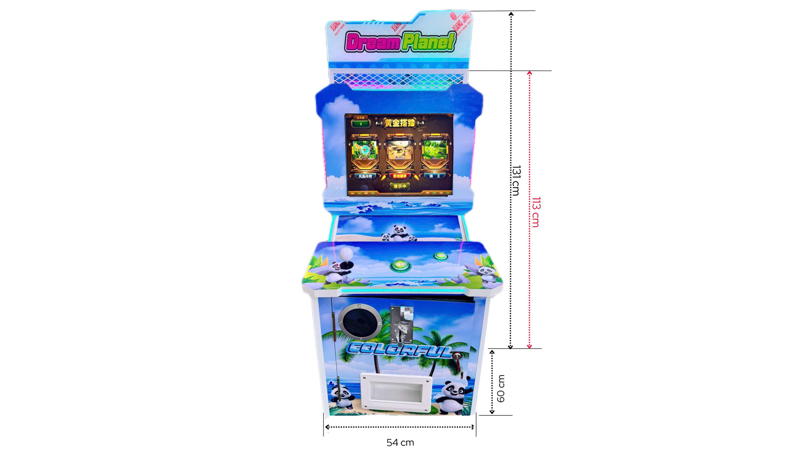 Điểm đặc biệt của dòng máy này nằm ở thiết kế COLORFUL với hệ thống đèn LED RGB đa sắc, tạo hiệu ứng thị giác bắt mắt, thu hút người chơi ngay từ cái nhìn đầu tiên. Với kích thước nhỏ gọn, máy phù hợp với mọi không gian từ phòng khách gia đình đến góc siêu thị, quán cà phê hay khu vui chơi chuyên nghiệp.
