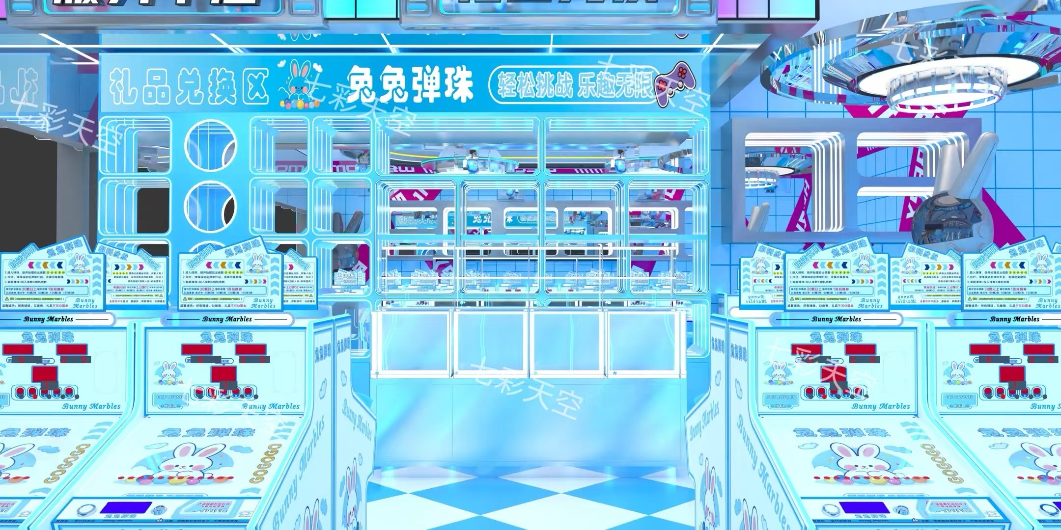 💎 Khu Vui Chơi Trẻ Em Phong Cách Hiện Đại – Tỏa Sáng Với Máy Gắp Thú Bông Màu Xanh Băng Ngọc!