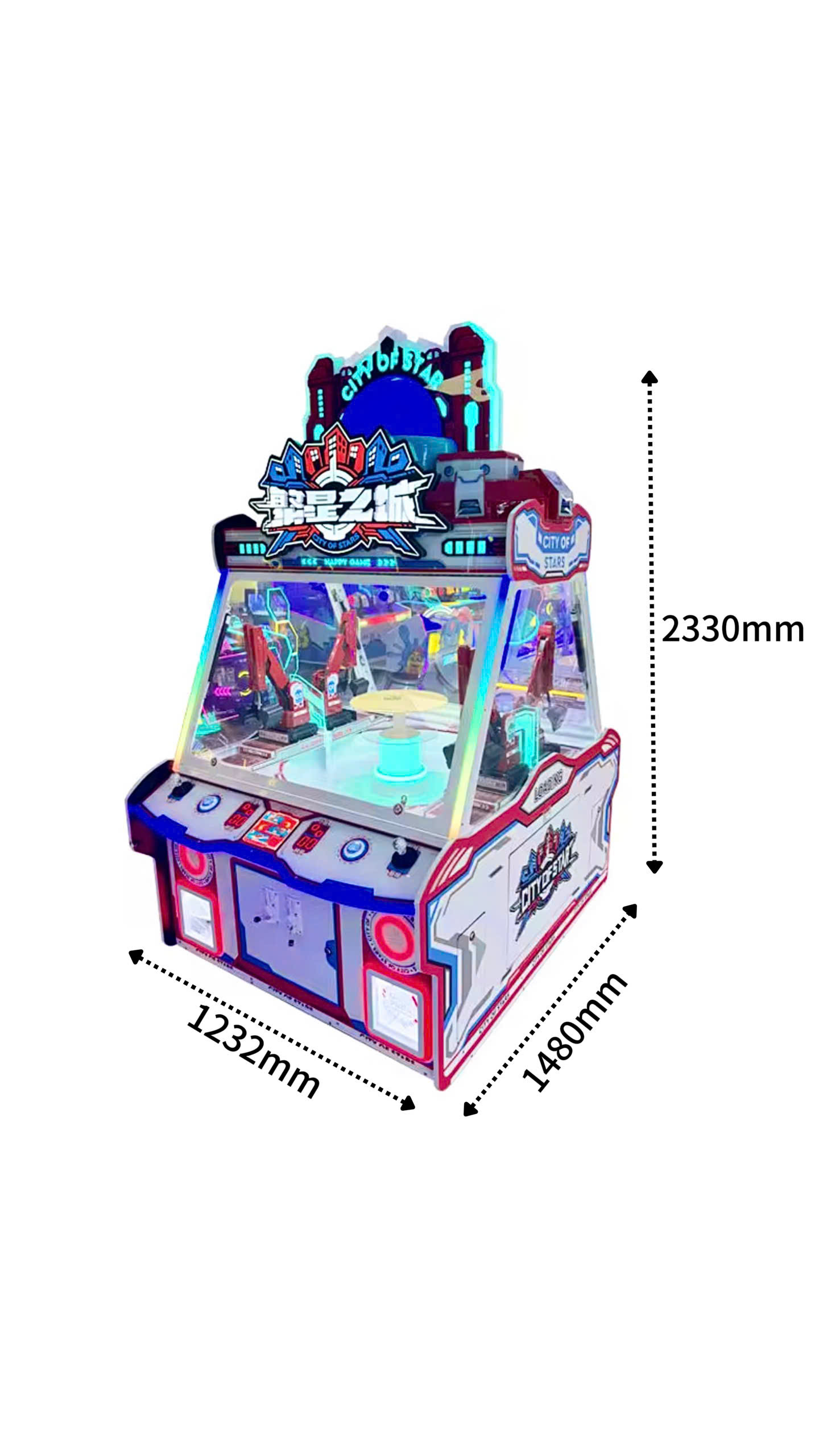Máy gắp quà tặng City Of Star là dòng máy gắp thú thế hệ mới với thiết kế lấy cảm hứng từ thành phố ánh sao lung linh. Điểm đặc biệt của sản phẩm này là khả năng phục vụ lên đến 4 người chơi cùng lúc, biến những lượt gắp đơn độc thành những trận đấu đối kháng sôi động giữa bạn bè và người thân.