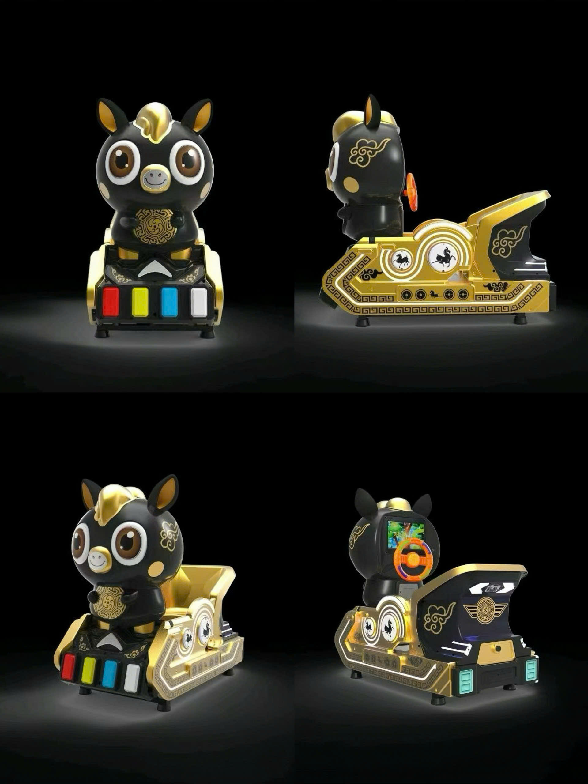 Với 3 màu sắc hot trend (trắng vàng, đen vàng, xanh dương vàng), thú nhún điện hình ngựa dễ dàng phối hợp với nhiều phong cách trang trí, tạo điểm nhấn sang trọng, thu hút cho không gian của bạn.